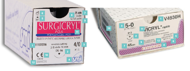 • atraumatisches Nahtmaterial aus einer Nadel-Faden-Kombination.