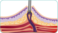 • idealer Einsatz bei blutenden Gefäßen, sog. Durchstechungen / Abreißfäden
